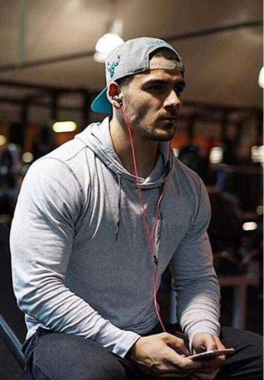 Men's T-shirt Outdoor Fitness Hooded T-shirt Men's Solid Color Sports Sweatshirt